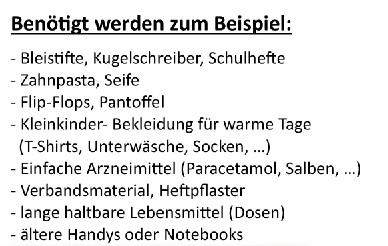 Was kann gespendet werden? Ein paar Beispiele sowie weitere Informationen findet ihr auf dem als Bild beigefügten Flyer.