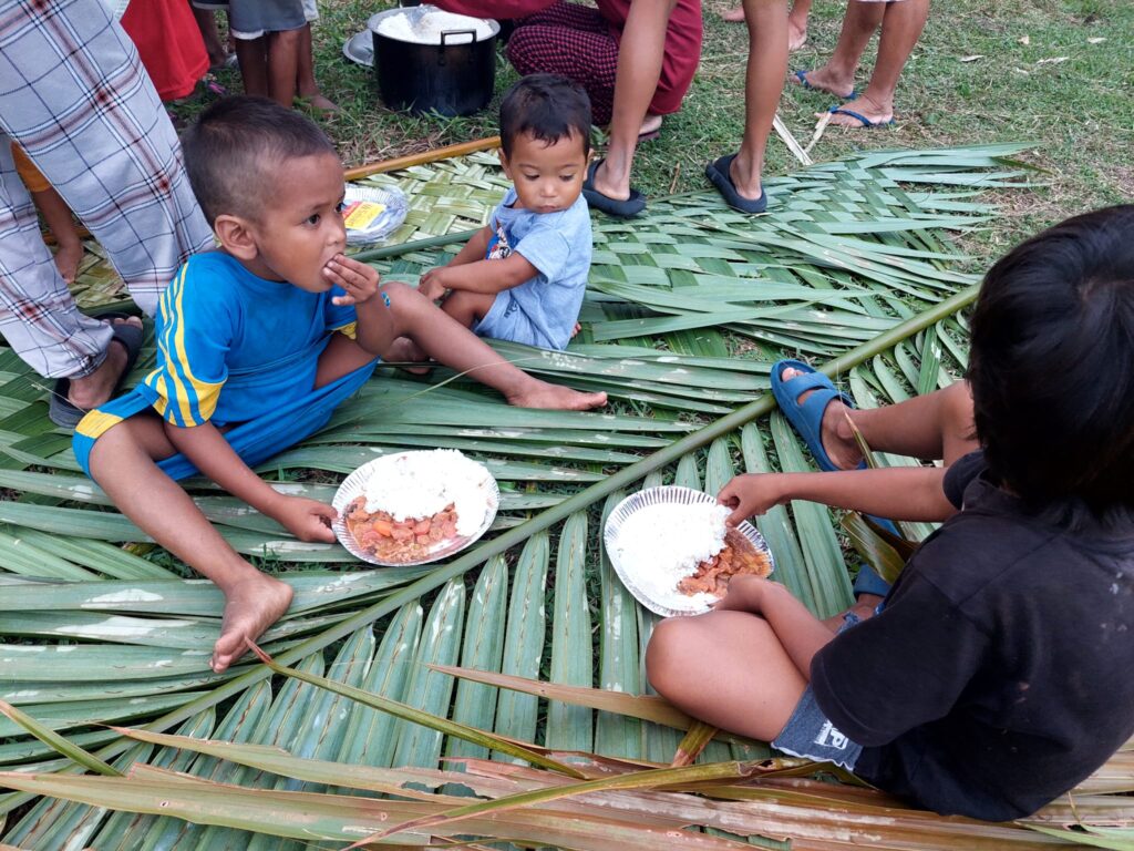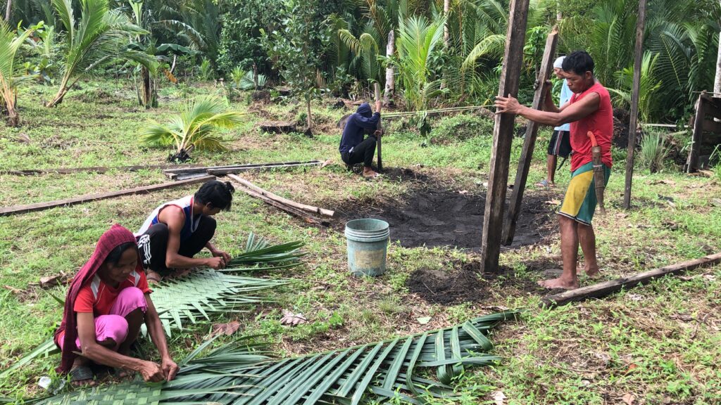 An dieser Straße haben die meisten Häuser feste Dächer. In den Dörfern, die durch Stichstraßen erschlossen werden, geht es einfacher zu. Das gilt auch für die Gegend, aus der die Rabinos stammen. Die Fotos oben zeigen, zu welchen Zwecken die langen Wedel der Kokospalme verwendet werden. Die daraus geflochtenen Matten werden zum Dachdecken verwendet, teilweise dienen sie auch als Hauswände. Man lebt vor allem von Fischfang und Landwirtschaft, besonders Reisanbau. Die Menschen sind offenbar sehr musikalisch, singen und spielen Instrumente. Der Vater der Schwestern leitete sogar ein kleines Orchester – und er kochte gut. Da es auf der Insel kaum Chancen gab, zog die Familie nach Manila. Leichter wurde es dadurch auch nicht.