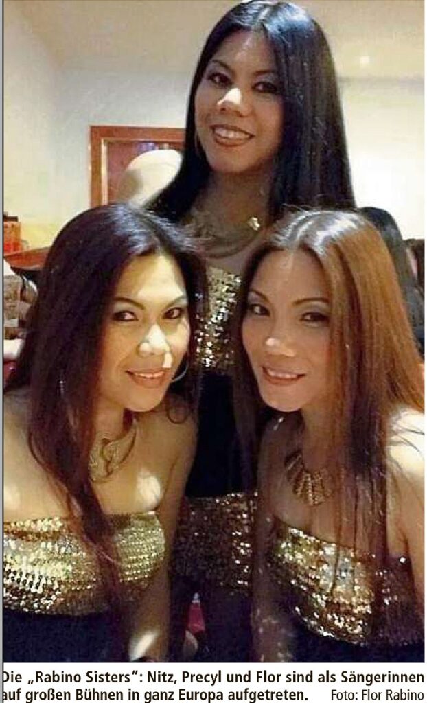 Dann suchte ein Musikmanager eine Bass-Gitarristin für eine philippinische Band in Rüdesheim. Precyl fuhr einfach los. Ein Jahr später folgte ihre Schwester Flor und dann auch Nitz. Zu dritt wechselten sie bald nach Gießen zur Cover- and Show Band SpeedLimit. youtube.com/watch? Das brachte ihnen Auftritte in ganz Europa. Aber irgendwann wollten sie sesshaft werden. Über den „Gießener Weg“ des Arbeitsamtes machten Flor und Precyl eine Ausbildung zur Köchin. Danach erhielten sie viel Unterstützung durch den SpeedLimit Bandleader Rüdiger Winter, der mit ihnen 2014 gemeinsam in den Gasthof „Zum Hirsch“ einstieg. Seit 2015 führt Flor Rabino die Gaststätte in Eigenregie. Anfangs bot sie nur deutsche Speisen an. Doch die Gäste fragten nach philippinischer und anderer asiatischer Küche, die mittlerweile den Hauptanteil der servierten Speisen ausmacht. Man kann die Schwestern immer mal zwischendurch singen und spielen hören.